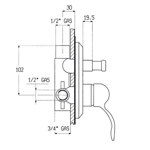 Miscelatore monocomando da incasso per vasca condeviatore incorporato.