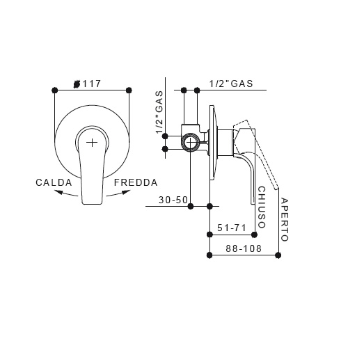 Miscelatore monocomando da incasso per doccia.