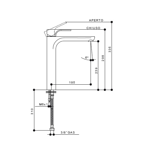 Miscelatore monocomando alto per lavabo con scarico click clack