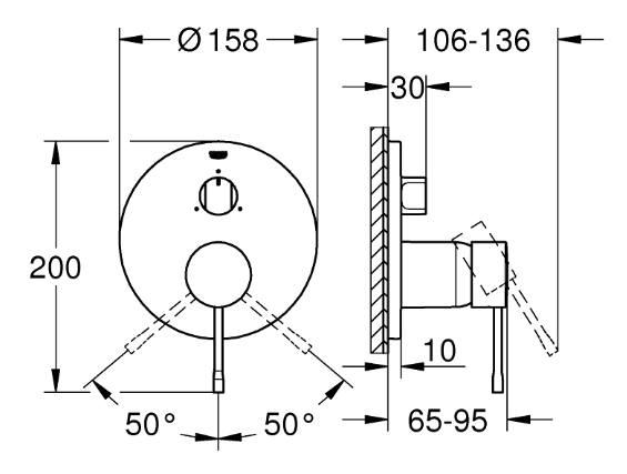 Parte esterna per corpo incasso GROHE Rapido SmartBox 35 604 000 / 35 600 000 cartuccia a dischi ceramici da 46 mm con tecnologia GROHE SilkMove sistema di installazione GROHE FastFixation con fissaggi nascosti piastra in metallo regolabile …