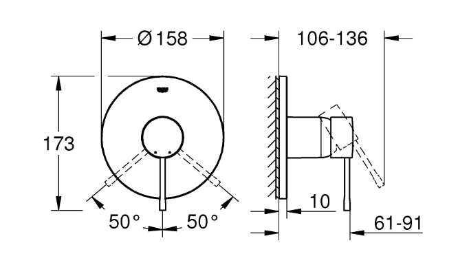 Parte esterna per corpo incasso GROHE Rapido SmartBox 35 604 000 / 35 600 000 GROHE Long-Life, finitura resistente sistema di installazione GROHE FastFixation con fissaggi nascosti piastra in metallo regolabile fino a 6° leva in metallo capacità di portata:uscita B o C: 30 l/min.