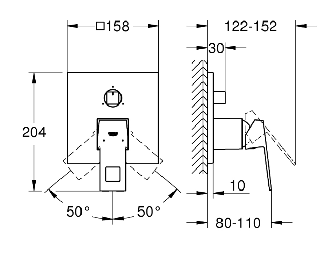 Parte esterna per corpo incasso GROHE Rapido SmartBox 35 604 000 / 35 600 000 cartuccia a dischi ceramici da 46 mm con tecnologia GROHE SilkMove sistema di installazione GROHE FastFixation con fissaggi nascosti piastra in metallo regolabile …