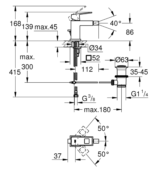 Cartuccia a dischi ceramici da 28 mm con tecnologia GROHE SilkMove dotato di serie di limitatore di temperatura con tecnologia GROHE Water Saving per il risparmio idrico portata massima (a 3 bar): 5 l/min sistema di installazione GROHE FastFixation Plus mousseur orientabile scarico a saltarello 1 1/4″