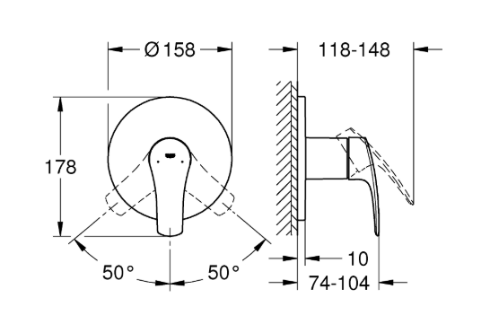 Parte esterna per corpo incasso GROHE Rapido SmartBox (35 604) cartuccia a dischi ceramici da 46 mm con tecnologia GROHE SilkMove sistema di installazione GROHE FastFixation con fissaggi nascosti piastra in metallo regolabile fino a 6° leva in metallo capacità di portata:uscita B o C: 30 l/min. REFERENZA DEDICATA AL CANALE TRADIZIONALE