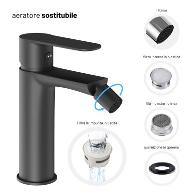 Miscelatore serie POP monocomando bidet cromo lucido Finiture: nero opaco, bianco opaco, nickel spazzolato, oro bronzato satinato, oro rosa Piletta click clak con troppo da 1.1/4" nero opaco, bianco opaco, nickel spazzolato, oro bronzato …