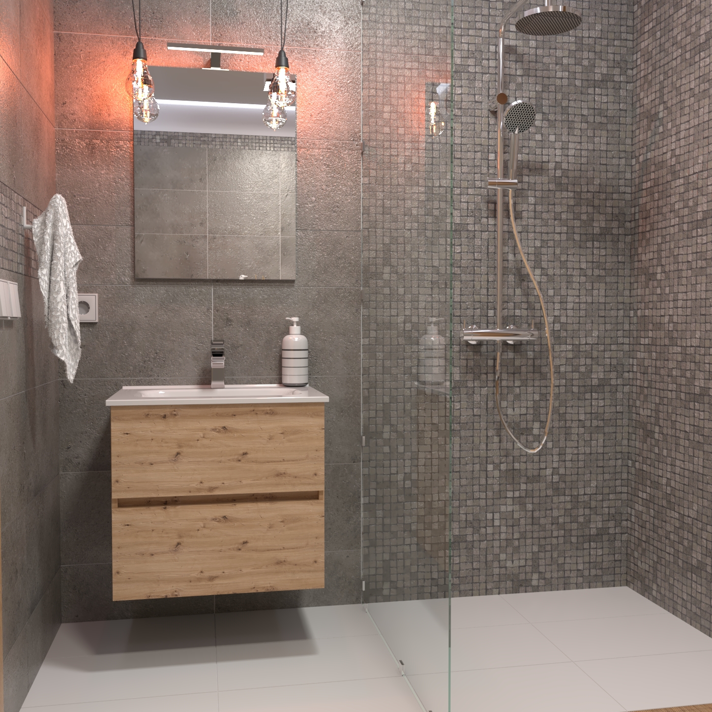 MOBILE CON LAVABO PER BAGNO SERIE ROX 60 CM. Questo mobile senza appoggio a terra della larghezza di 60 centimetri e profondità 46, è dotato di ampi cassetti con chiusura rallentata, la tecnologia soft close eviterà i fastidiosi rumori provocati da chiusure improvvise. La finitura del mobile in grigio permette il facile abbinamento ad un bagno moderno ed elegante. LA COMPOSIZIONE INCLUDE: la base, il lavabo e lo specchio con lampada DIMENSIONI: Base: L. cm 59 P. cm 44 H. cm 54 Lavabo: L. cm 61 P. cm 46 H. cm 2 Specchio: L. cm 52 SP. cm 2 H. cm 68 NON SONO INCLUSI: il rubinetto e il sifone acquistabili separatamente