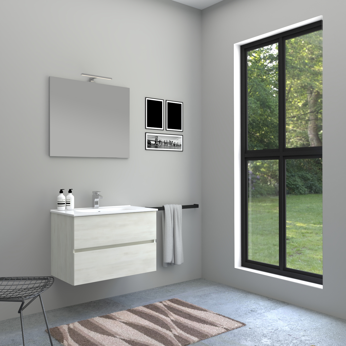 MOBILE CON LAVABO PER BAGNO SERIE ROX 80 CM. Questo mobile sospeso della larghezza di 80 centimetri e profondità 46, è dotato di ampi cassetti con chiusura rallentata, la tecnologia soft close eviterà i fastidiosi rumori provocati da chiusure improvvise. La finitura del mobile permette il facile abbinamento ad un bagno moderno ed elegante. LA COMPOSIZIONE INCLUDE: la base, il lavabo e lo specchio con lampada DIMENSIONI: Base: L. cm 79 P. cm 44 H. cm 54 Lavabo: L. cm 81 P. cm 46 H. cm 2 Specchio: L. cm 80 SP. cm 2 H. cm 68 NON SONO INCLUSI: il rubinetto e il sifone acquistabili separatamente STRUTTURA E SCOCCHE: pannello nobilitato con finitura BIANCO MATRIX, Bordatura in abs da 1 mm, utilizzo di colle speciali che aumentano la resistenza del pannello all’umidità. FERRAMENTA: i cassetti hanno il sistema di chiusura ammortizzata per una maggiore qualità e comfort. SPECCHIO: specchio filo lucido. Senza presa e interruttore. LAVABO: In ceramica di prima qualità LAMPADA: Lampada Led 5W ABS CROMO FISSAGGIO: tasselli e placche per il fissaggio inclusi