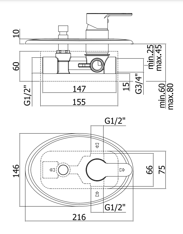Rubinetto miscelatore incasso doccia con deviatore Paffoni. Rubinetteria con cartuccia diam. 35mm