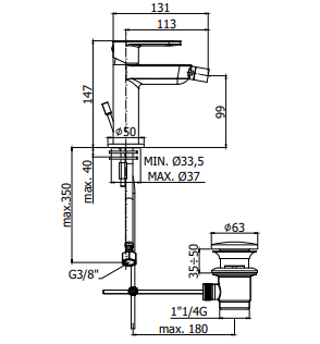 Miscelatore bidet Con scarico automatico 1''1/4G Snodo e areatore M16x1 Set 2 flessibili inox 3/8”G Finitura cromo