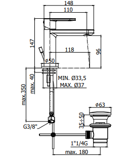 Miscelatore lavabo Con scarico automatico 1''1/4G Aeratore M24x1 Slim air Set 2 flessibili inox 3/8”G Finitura cromo
