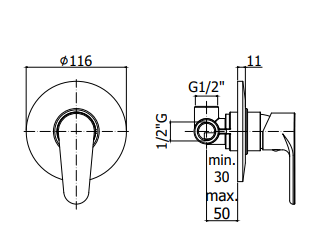 Miscelatore incasso doccia (1 uscita) completo di: piastra in metallo Ø116mm attacchi 1/2”G senza deviatore Finitura Cromo