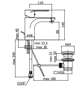 Miscelatore lavabo completo di: aeratore M24x1 Slim air set 2 flessibili inox 3/8”G con scarico automatico 1”1/4G Finitura Cromo