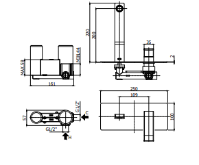 Miscelatore incasso lavabo completo di: • piastra in acciaio inox 250x100mm • attacchi 1/2”G