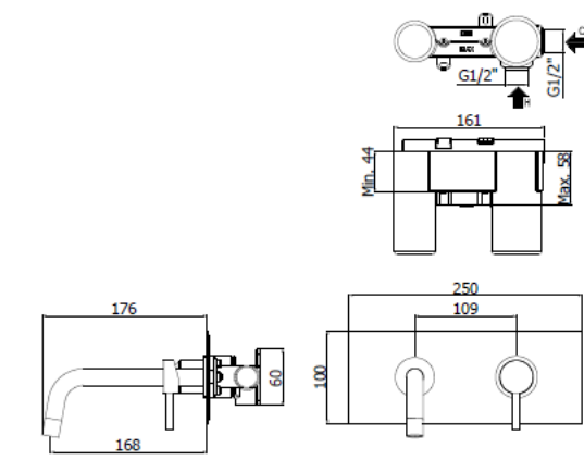 Miscelatore Lavabo a muro Light di Paffoni finitura cromo, completo di piastra in acciaio inox. Design tondo ed elegante. Dimensioni: mm L.250 x P.175