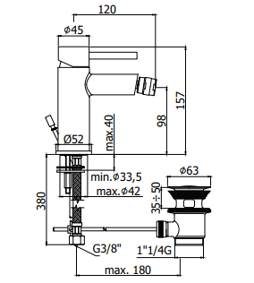 Miscelatore bidet Con scarico automatico 1''1/4G Snodo e areatore M16x1 Set 2 flessibili inox 3/8”G Finitura cromo