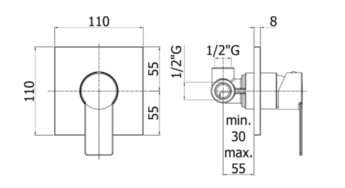 Il modello Tango firmato Paffoni (cod. TA010CR), in ottone cromato, a 1 uscita senza deviatore, fornito con: piastra 110x110 mm; attacchi 1/2''G.